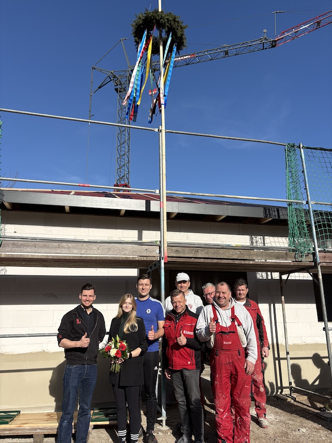 Eine Woche später durften wir schon wieder Richtfest feiern. Diesmal im Cottbuser Stadtteil Willmersdorf, wo dieser klassische Bungalow entsteht.